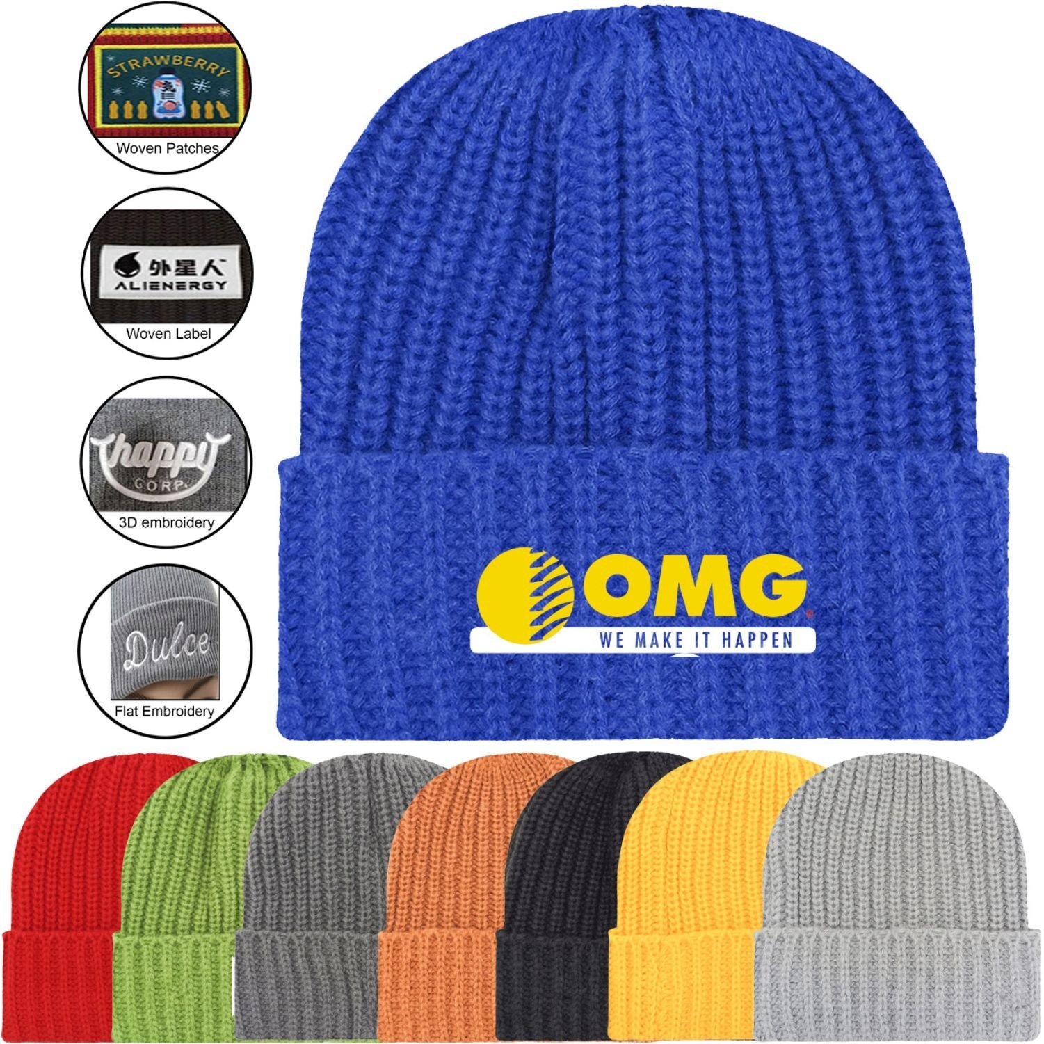 Get customers flowing in your direction when you include these 100% Acrylic Cuffed knitted beanie with Custom logo in your next advertising campaign! This outdoor winter beanie comes in a convenient adult size and can be customized with an embroidered of your organization’s name, logo and advertising message. Use custom knitted beanies with folding cuffs to promote your athletic team or make it a part of your corporate lineup of gifts and giveaways.